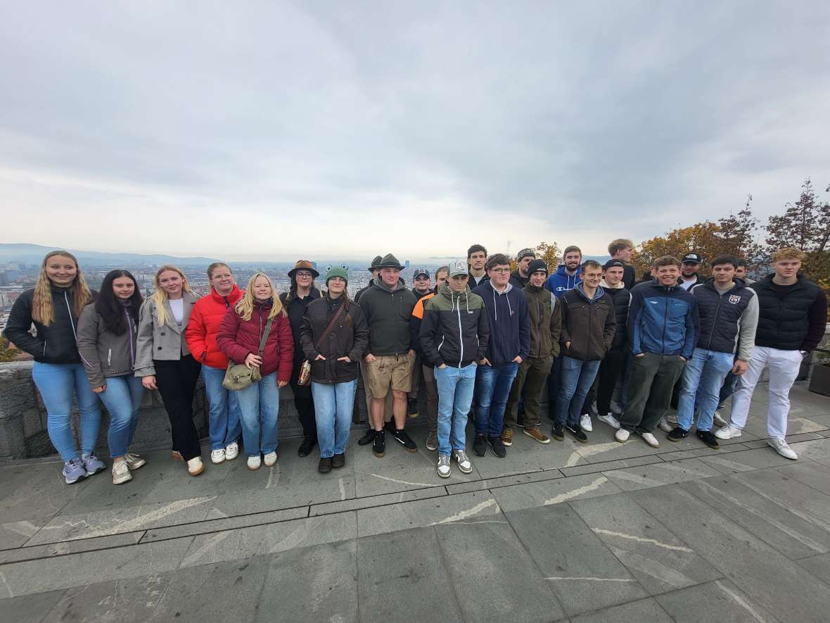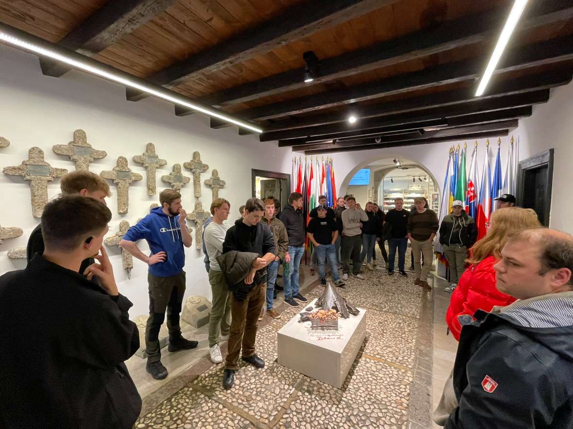 Der Wettergott war uns am dritten Tag gnädig und schenkte uns in Udine sogar ein paar zaghafte Sonnenstrahlen. Die Schüler:innen des Italienischunterrichts stellten Sehenswürdigkeiten der Stadt Udine vor. Anschließend fuhren wir zur Höhlenkirche San Giovanni d'Antro im Natisone-Tal, wo wir einerseits Historisches über die Höhlenkirche erfuhren und andererseits eine Führung durch die Höhle bekamen. Wir wechselten dann wieder auf die slowenische Seite, nach Kobarid, wo wir am Nachmittag ein Führung durch das Museum zur Isonzo-/Soča-Front im Ersten Weltkrieg hatten. Eindrücklich wurden uns die Gräuel des Krieges nahegebracht und das wir alles dafür tun müssen, dass wir in Frieden leben können. Nach diesem letzten Besichtigungspunkt unsere Exkursion ging es über den Predil-Pass zurück nach Bruck.