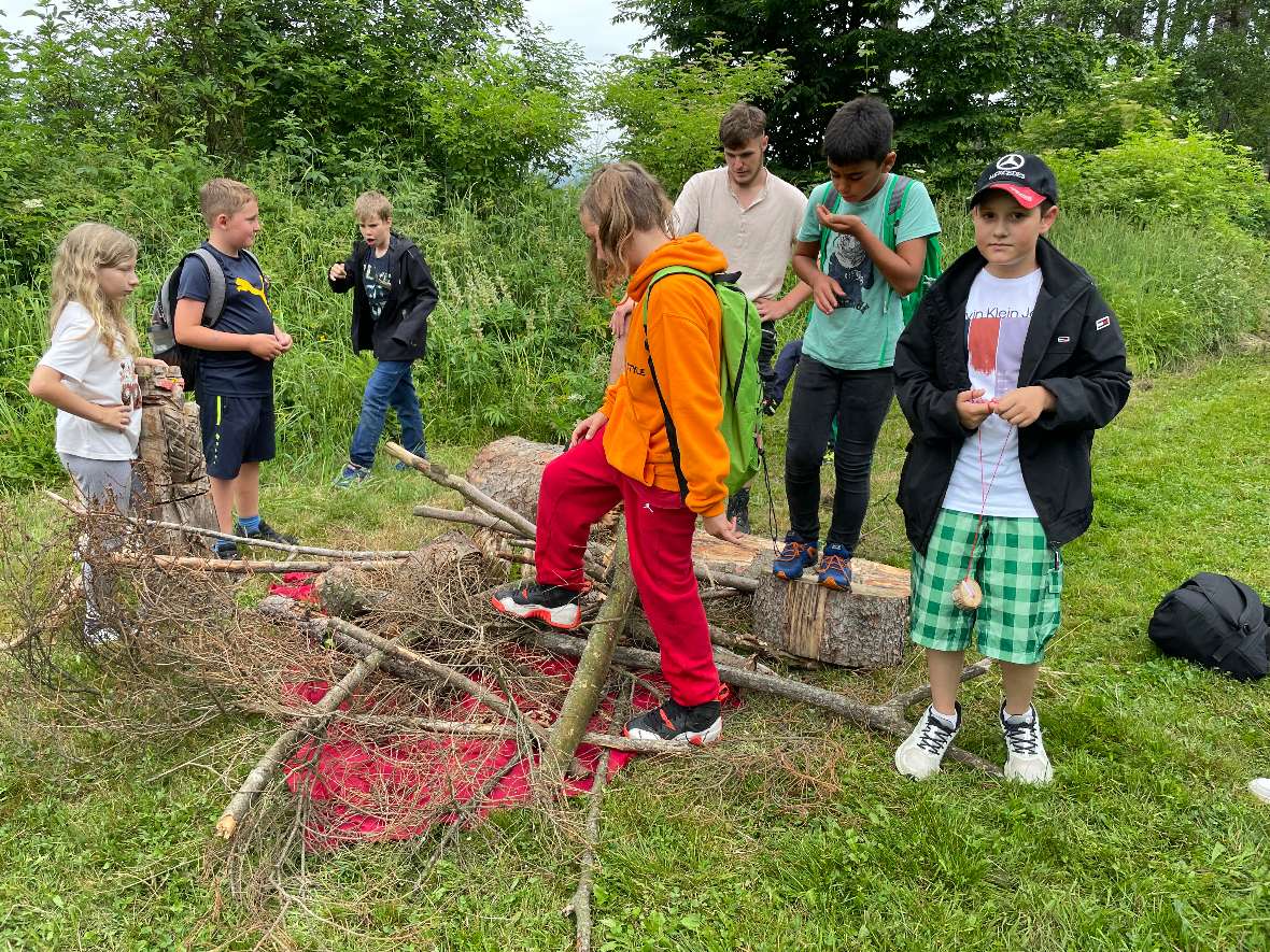 Die 44 Waldpädagoginnen und Waldpädagogen der 4A, 4B und des AL2 führten unter Betreuung von Profin. Engelberger und Profin. Gailberger heuer 160 Kinder der Volksschulen St. Katharein an der Laming, Krieglach und Dr.-Th.-Körner/Bruck sowie der Pius-Sonderschule durch den Wald rund um die Waldschule auf der Fleischhackeralm. Trotz unbeständigen Wetters – von Sonnenschein bis Regenguss – lernten die Kinder auf spielerische Art die Bedeutung des Waldes und seine Aufgaben kennen. Verknüpft mit Wissensvermittlung über die Tiere und Pflanzen des Waldes waren es drei erfolgreiche Tage mit viel Freude beim kreativen Gestalten von Waldbildern, Kugelbahn bauen und bei der Waldschatzsuche. Die Pius-Kinder wurden durch einen Stationenbetrieb am Waldschulgelände geführt, ein besonderes Highlight war der abenteuerliche Gang durch den Fichtenirrgarten und die Verkostung von Wildwurst.